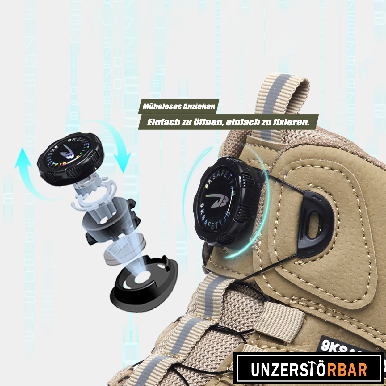 Der innovative Drehverschluss ermöglicht ein sekundenschnelles Anziehen und eine präzise Anpassung mit nur einer Hand – kein lästiges Binden, kein Lösen der Schnürsenkel.