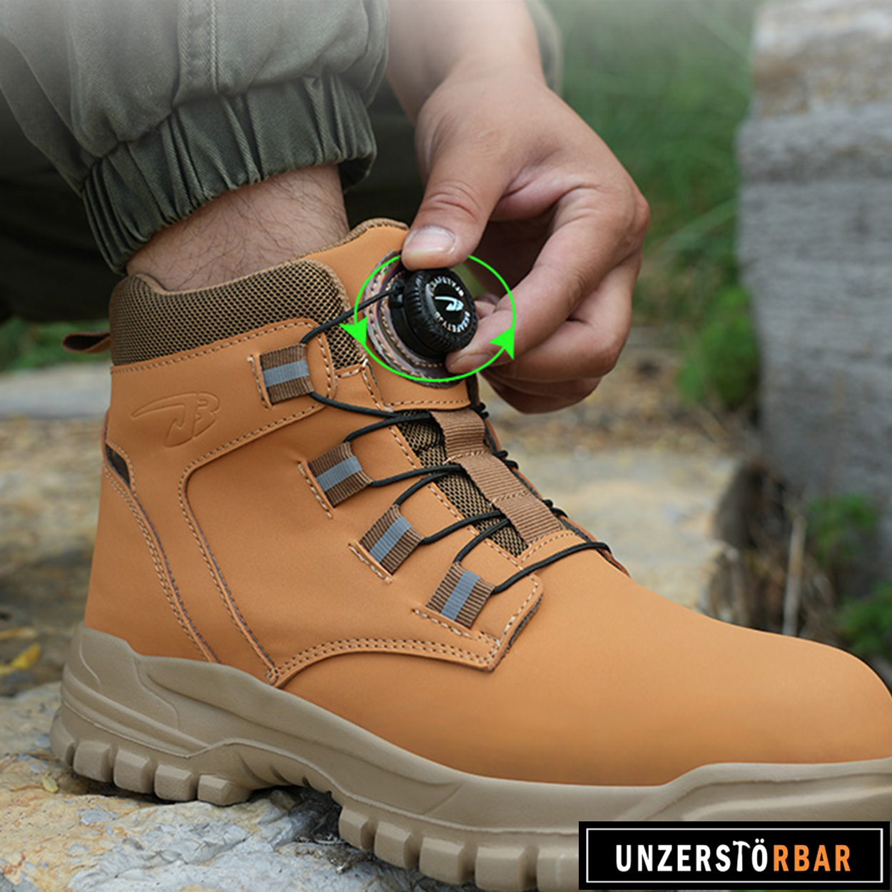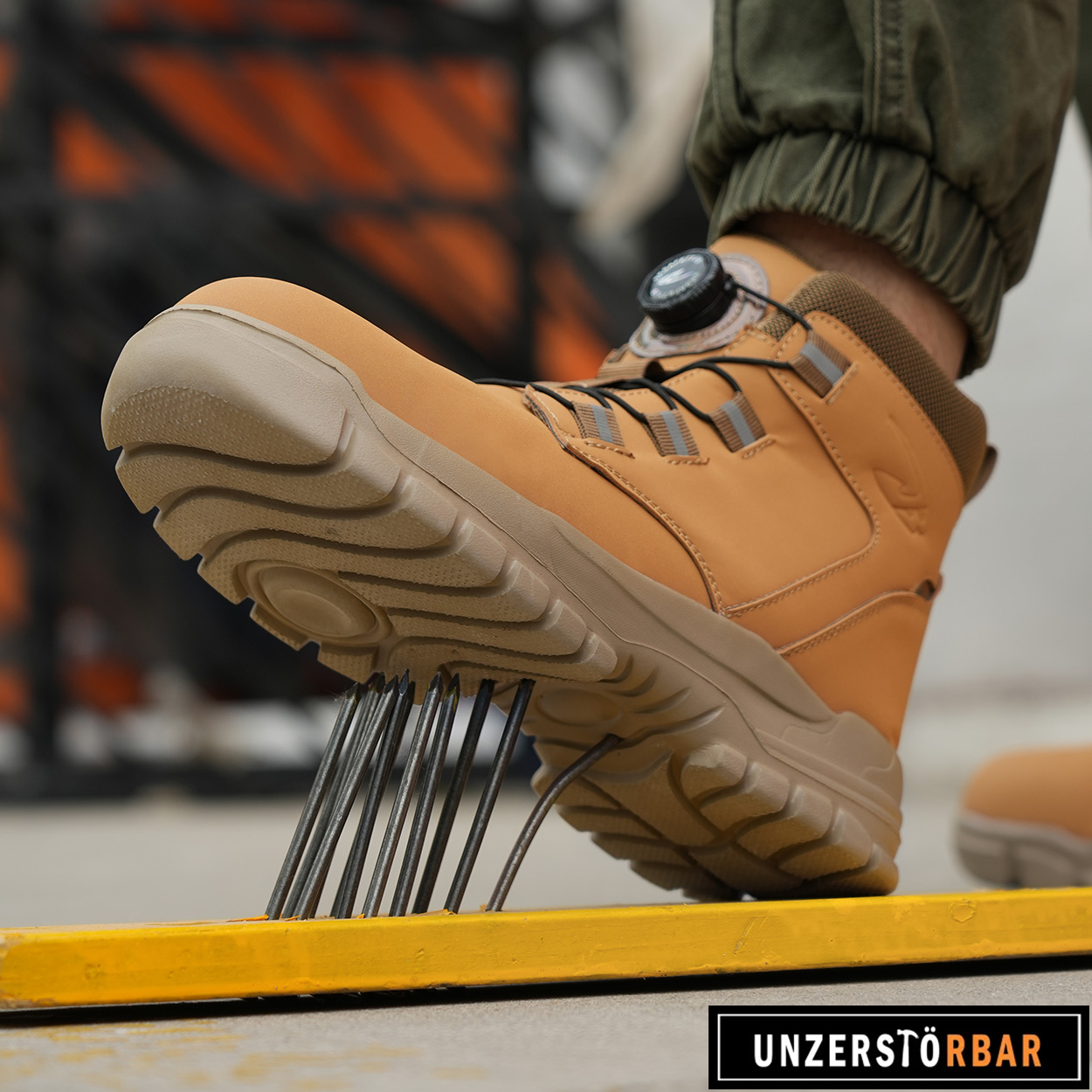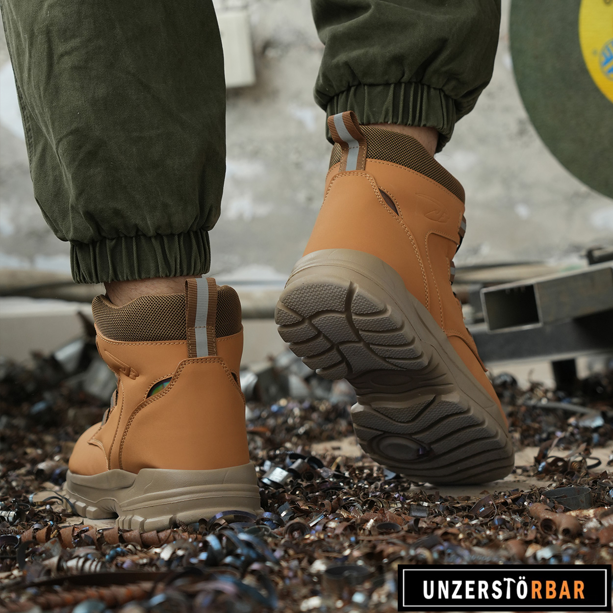 • Die Vollgummisohle verleiht den Sicherheitsschuhen ausreichend Halt und eine super Anti-Rutsch-Wirkung.