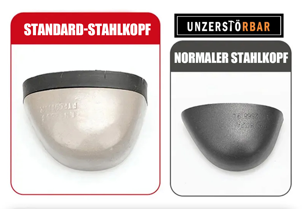 Eingebauter, verbreiterter und verdickter Standardstahlkopf für besseren Schutz und höhere Sicherheit.
